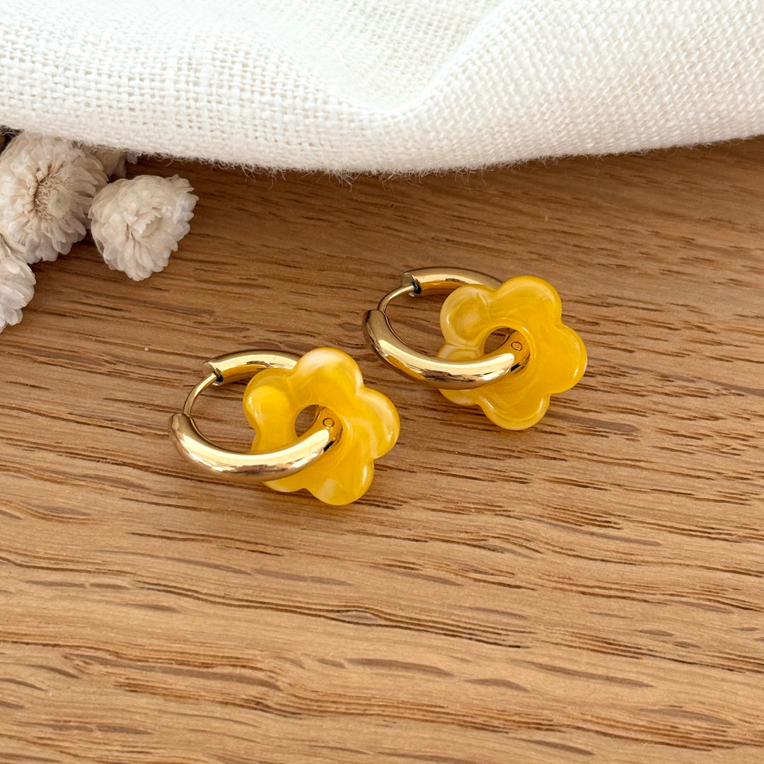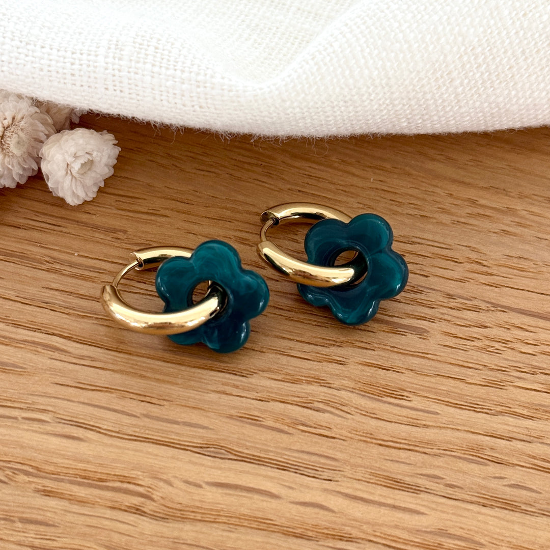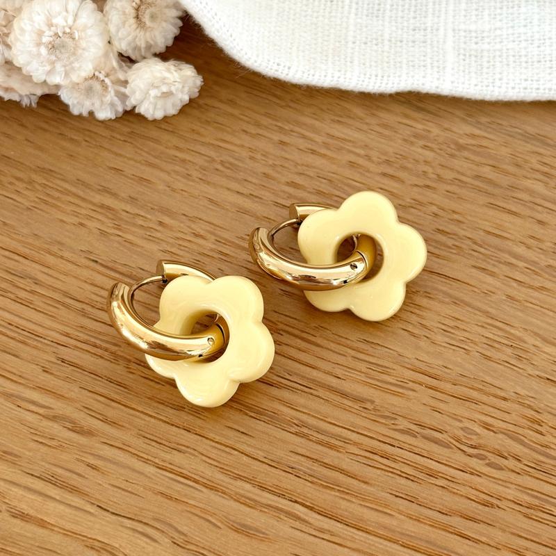 Um einen Boho-Look zu vervollständigen, sind größere Creolen eine schöne Alternative (z. B. unsere Creolen mit Blumen „Dayana”).