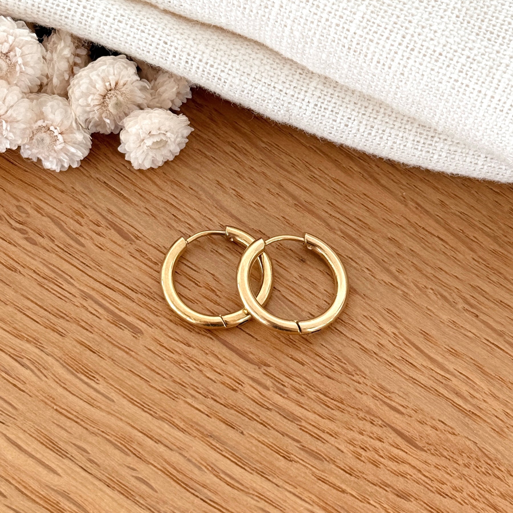 - Fine paire de créoles en acier inoxydable doré