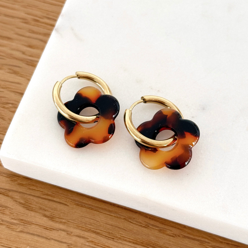 • Boucles d'oreilles composées d'un anneau fin orné d'une fleur en résine couleur léopard