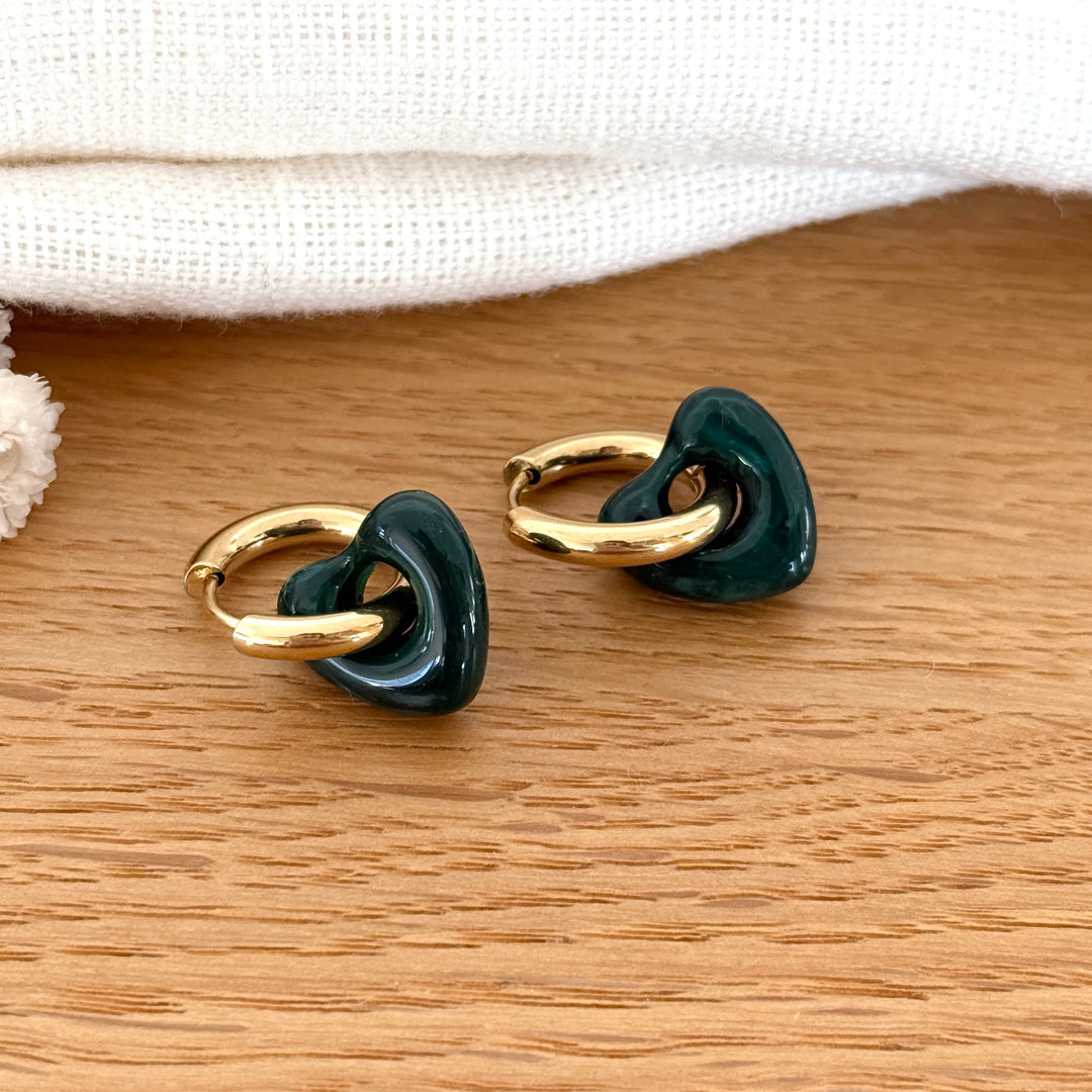 Créoles "Flora" vert foncé acier