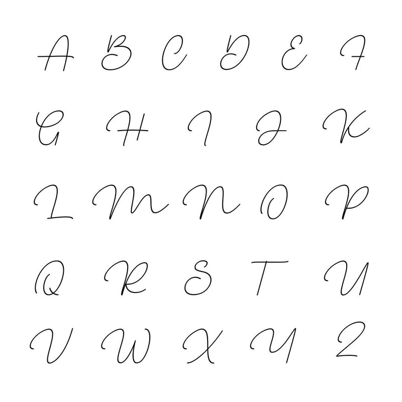 Dado que la elección del tipo de letra es muy importante para que el grabado resulte armonioso en función del tipo de texto (frase, fecha), le ofrecemos 5 tipos de letra diferentes: Moderna, Manuscrita, Románica, Script y Pluma.