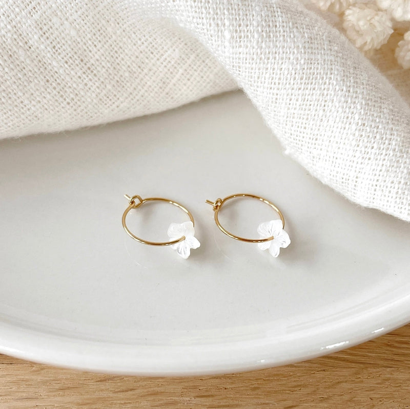 - Boucles d'oreilles ornées d'une petite fleur en nacre (8mm)