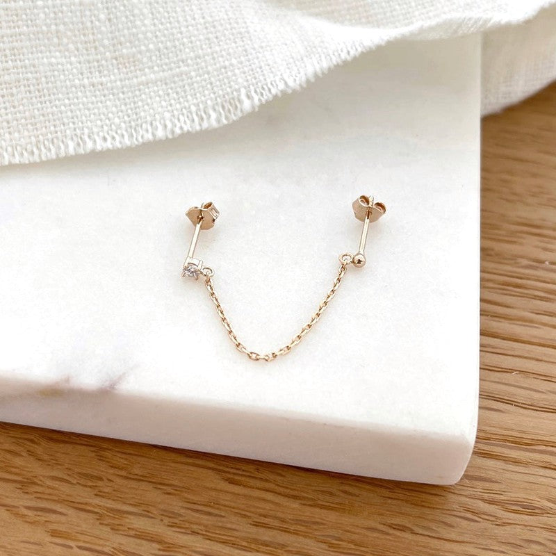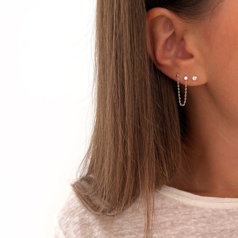 - Composée d'une puce (2mm) ornée d'un zirconium et d'une bille plaqué or (2mm) reliées par une chaînette