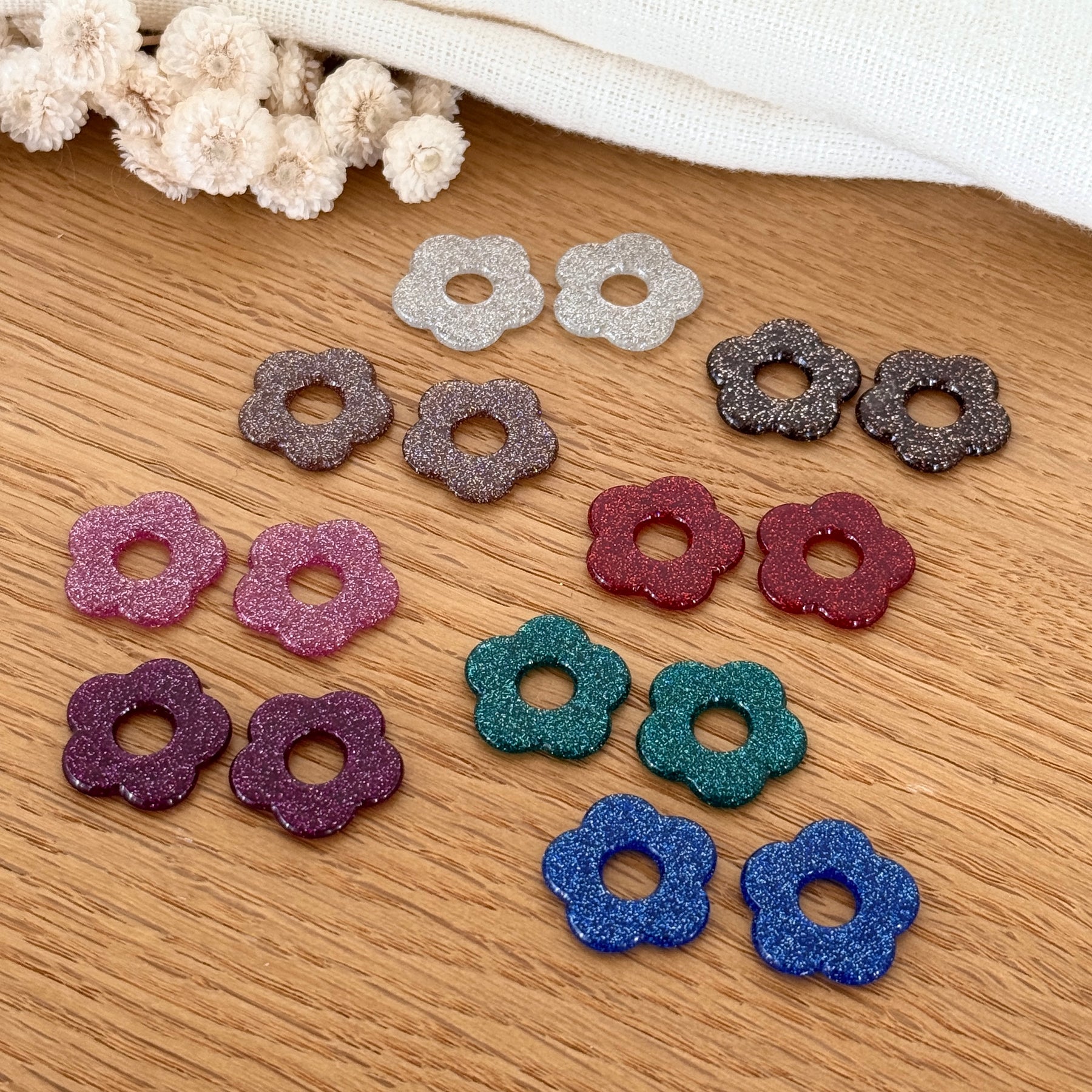 - Paire de fleurs fines en acétate, coloris au choix