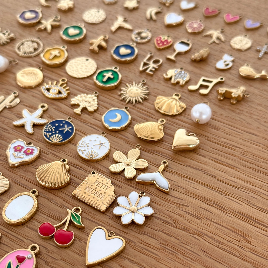 Découvrez notre collection de charms et pendentifs en acier inoxydable doré pour collier, bracelet, boucles d'oreilles... des bijoux femmes tendances conçus pour sublimer toutes vos compositions. Nos bijoux en acier inoxydable doré résistants à l’eau allient style et durabilité longue durée. Idéals pour créer un bijou personnalisé avec chaîne en acier inoxydable doré, ces breloques s’adaptent à tous les styles !