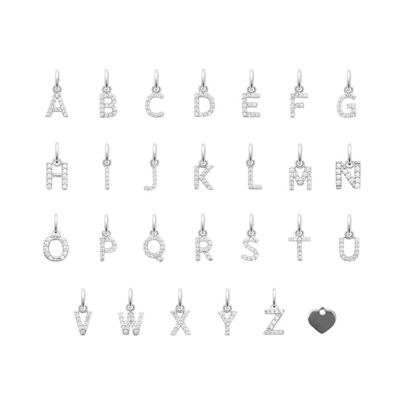 - Chaîne fine avec petites boules composée d'un ou plusieurs coeurs (5mm) et d'un ou plusieurs pendentifs lettres sertis d'oxydes de zirconium (5mm) au choix