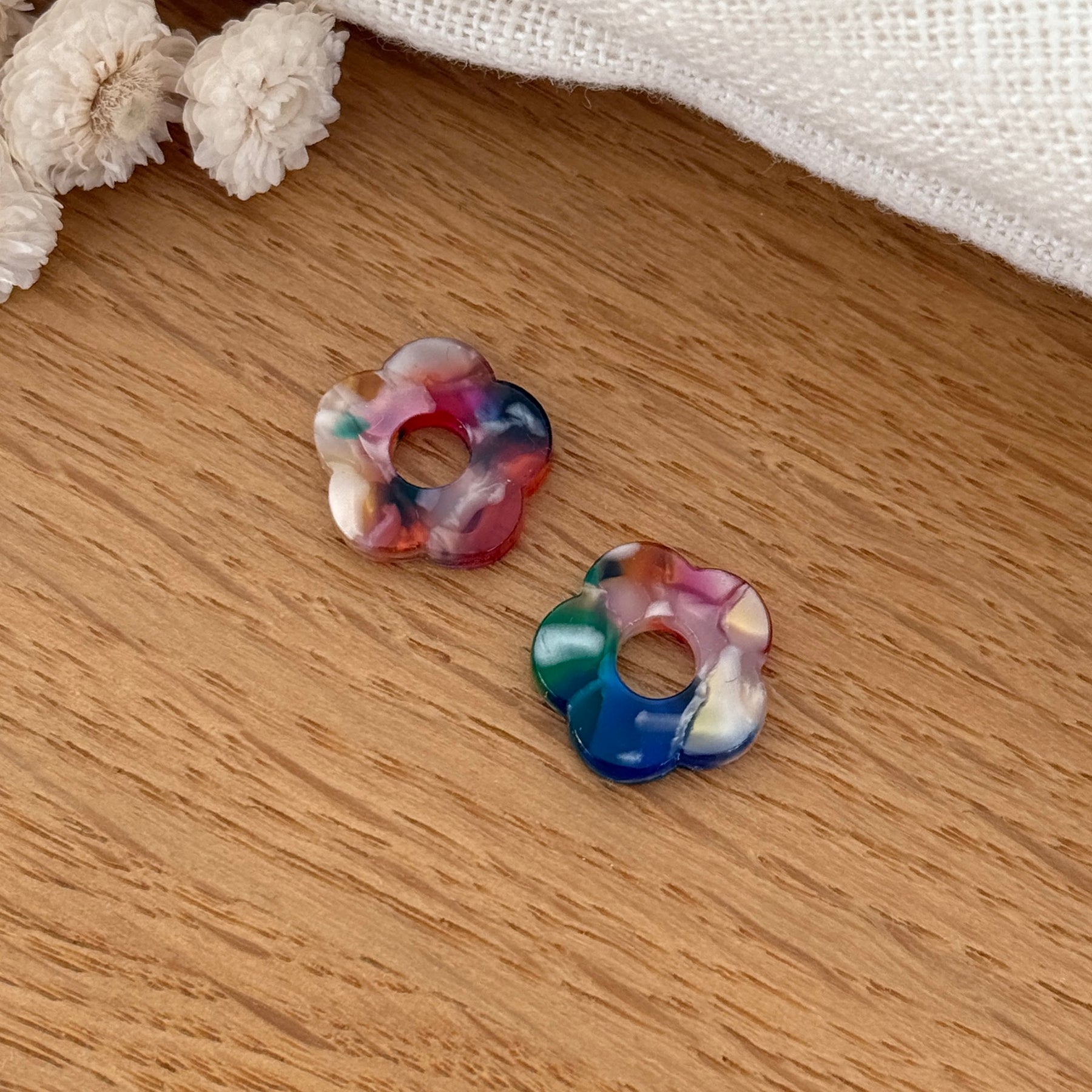 - Fleurs à assembler sur les créoles Mini Stelo ou à interchanger sur votre paire de créoles mini Flora