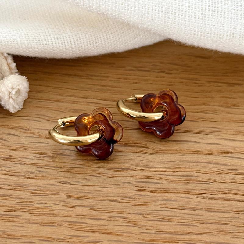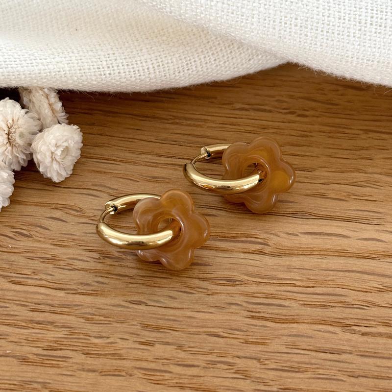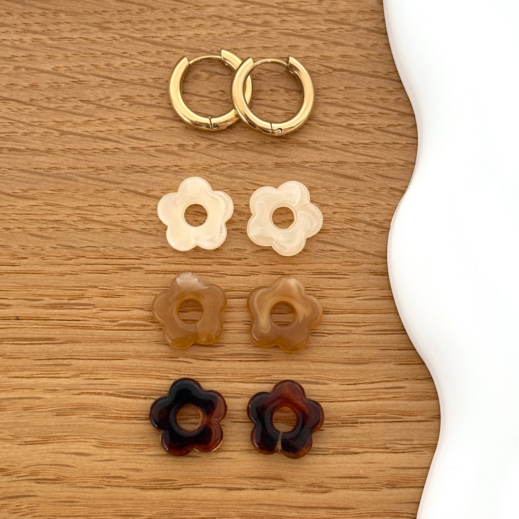 - Questa confezione contiene : 1 paio di orecchini a cerchio in acciaio inossidabile dorato + 3 paia di mini fiori intercambiabili