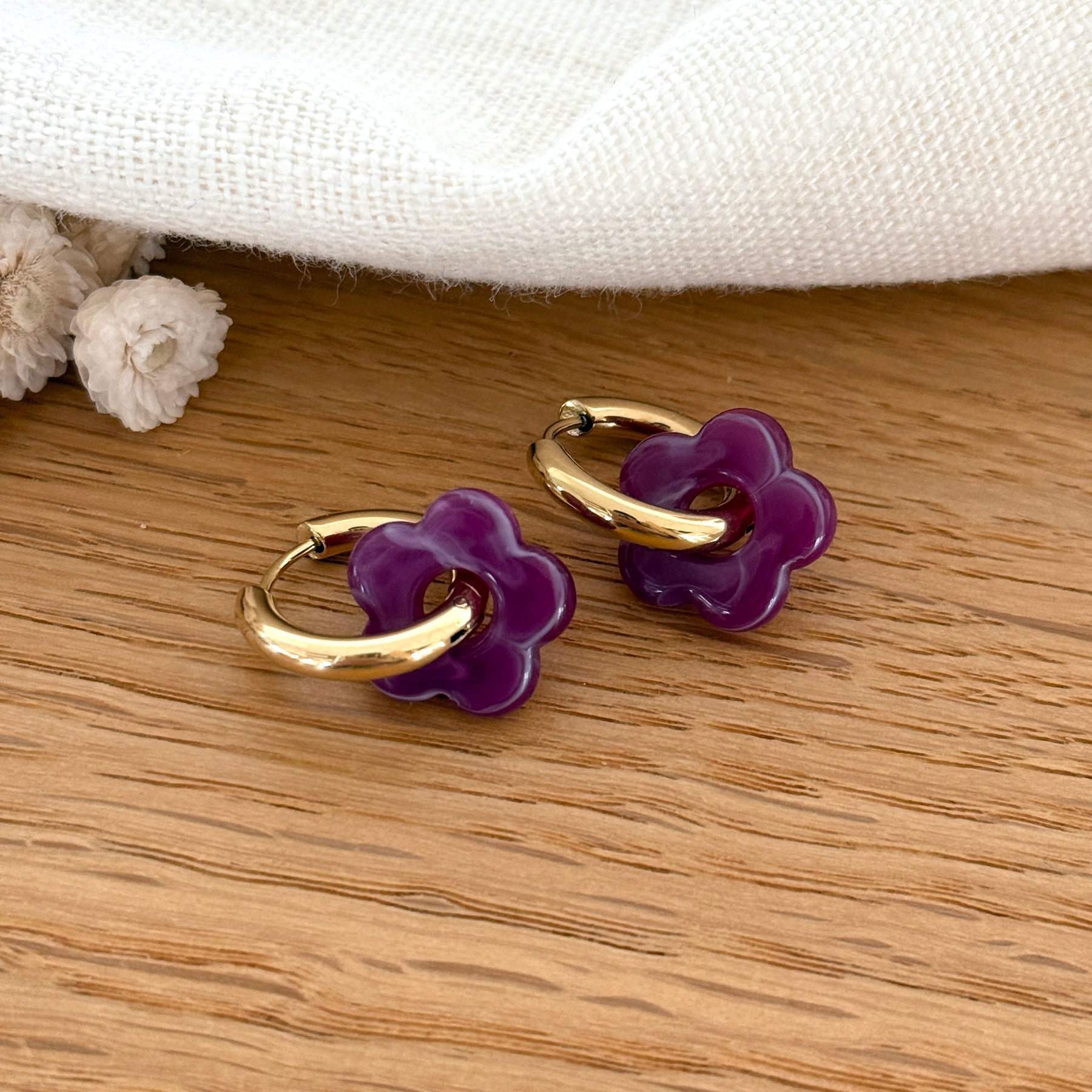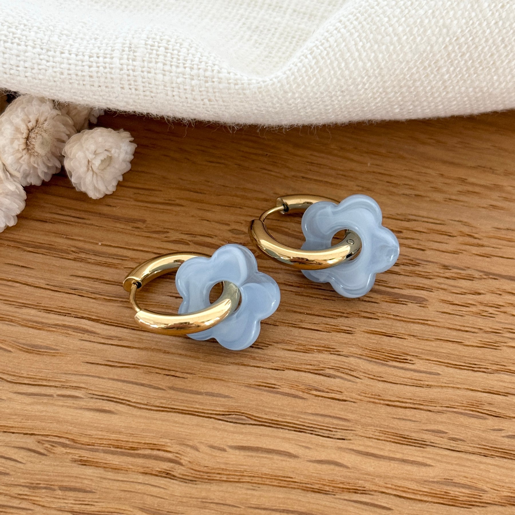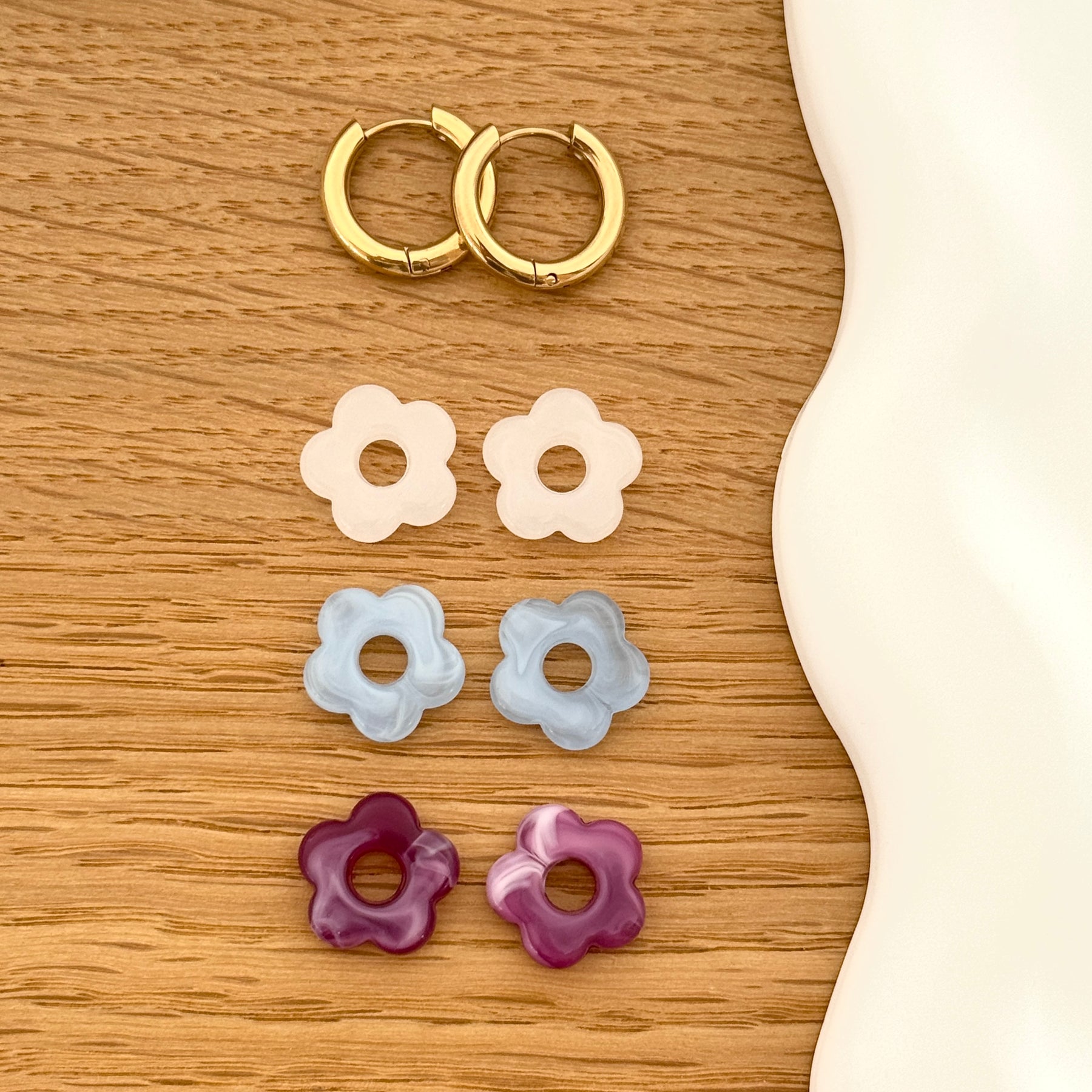 - Questa confezione contiene : 1 paio di orecchini a cerchio in acciaio inossidabile dorato + 3 paia di mini fiori intercambiabili